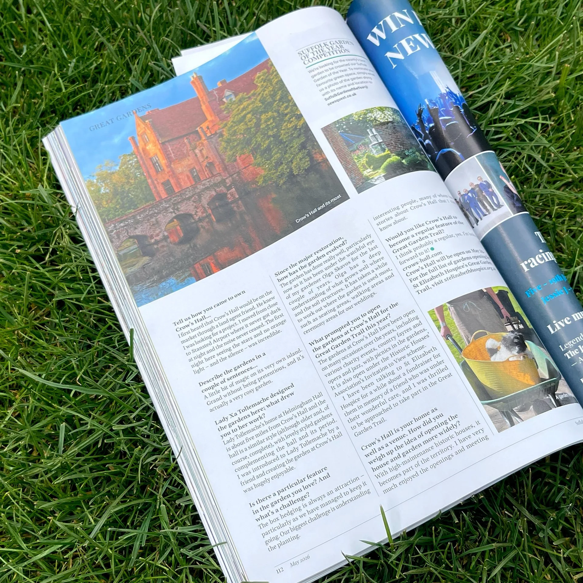 Crow’s Hall is featured in the May 2026 issue of Suffolk Magazine, as a new addition to the Great Gardens Trail.