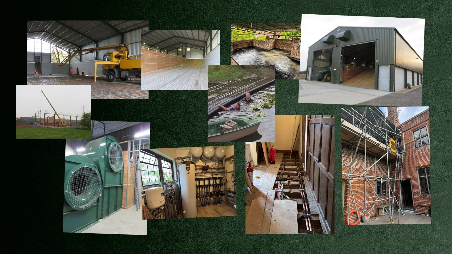 From grain storage and drying systems to scaffolding, services and repair works, these images capture the broader estate story behind recent years at Crow’s Hall.